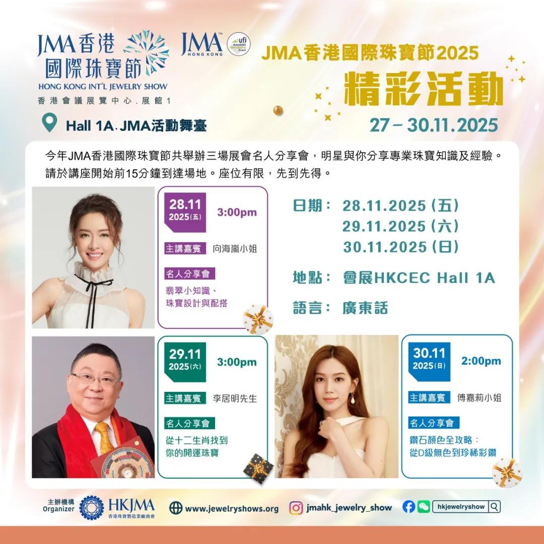 展会同期将举办多场专题讲座、工作坊及名人分享会,结合文化、设计与时尚,邀您共赴一场「珠宝知识深度游」。分享会精彩内容包括: